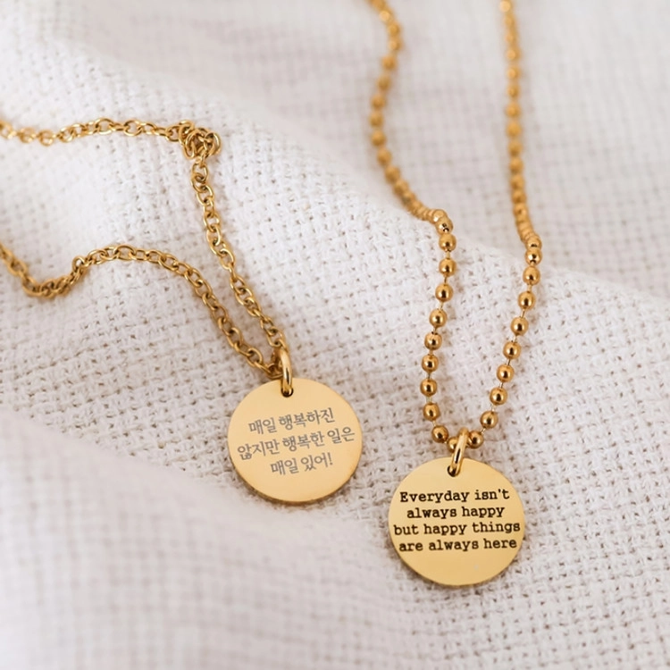 영원히 간직하고 싶은 순간을 새겨보세요. 정교한 각인으로 이름, 기념일, 좌우명 등을 자유롭게 담을 수 있습니다. 변색과 알러지 걱정 없는 써지컬 소재로 데일리하게 착용하기 좋으며, 깔끔한 원형 디자인이 어떤 코디에도 세련된 포인트가 됩니다.