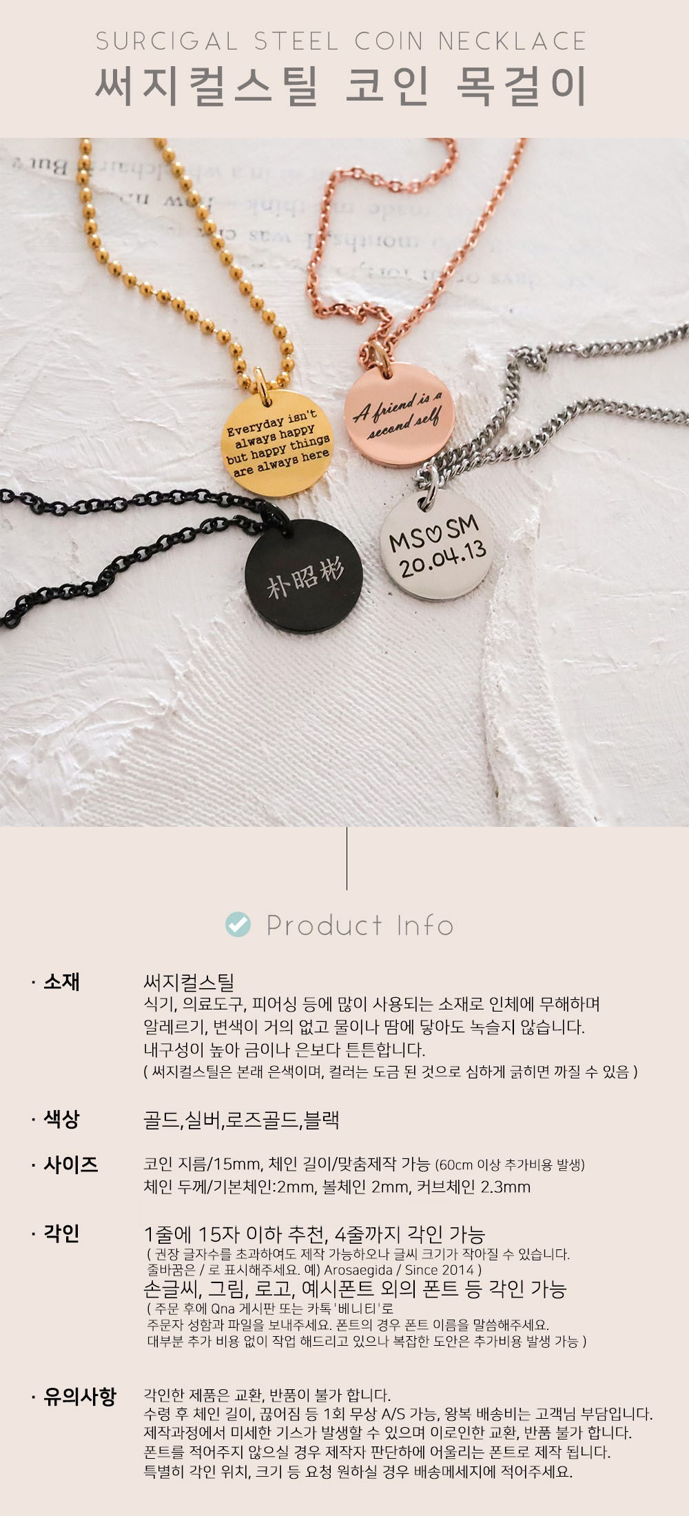 [각인가능] 코인 이니셜 써지컬 목걸이SALEBEST