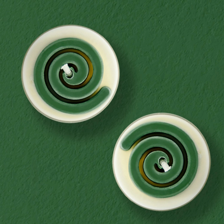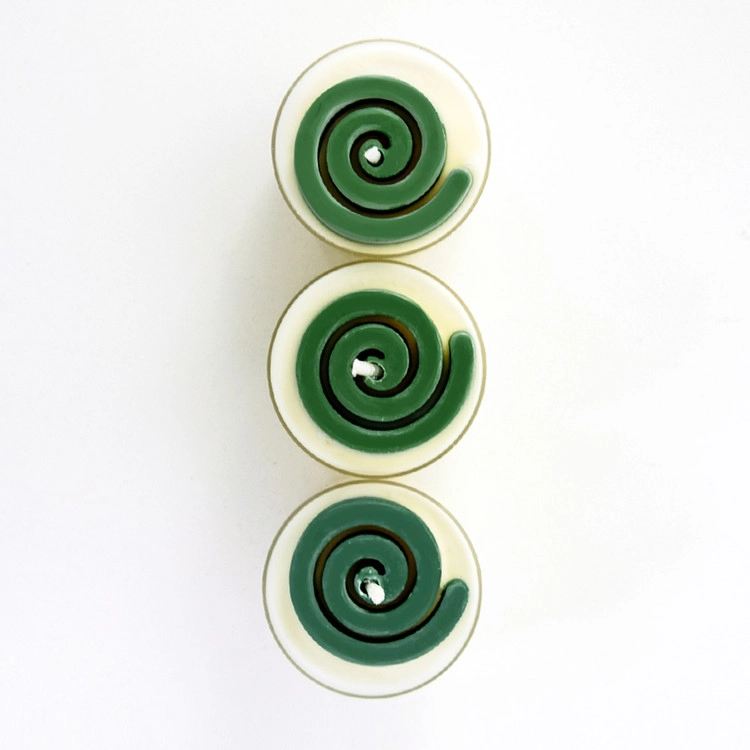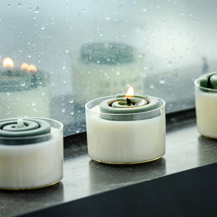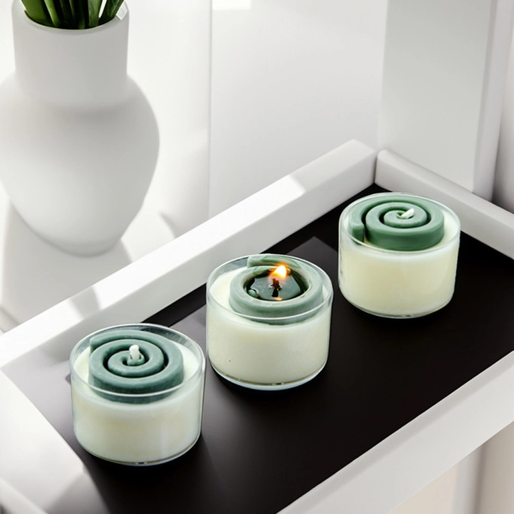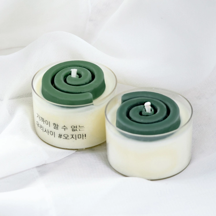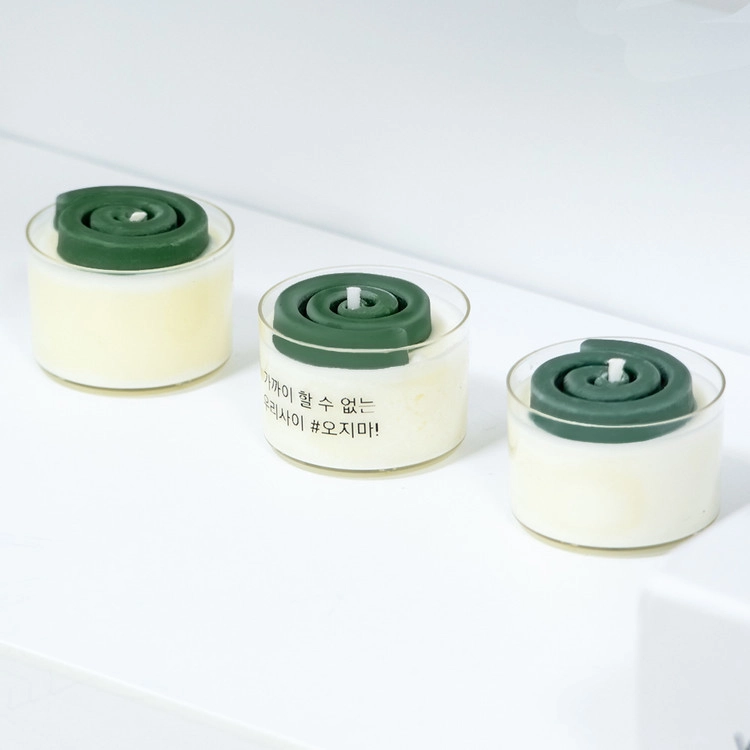 벌레들이 기피하는 향인 시나몬과 레몬그라스에서 추출한 오일로 제작된 모기향 모양의 미니 모기향 티라이트 캔들