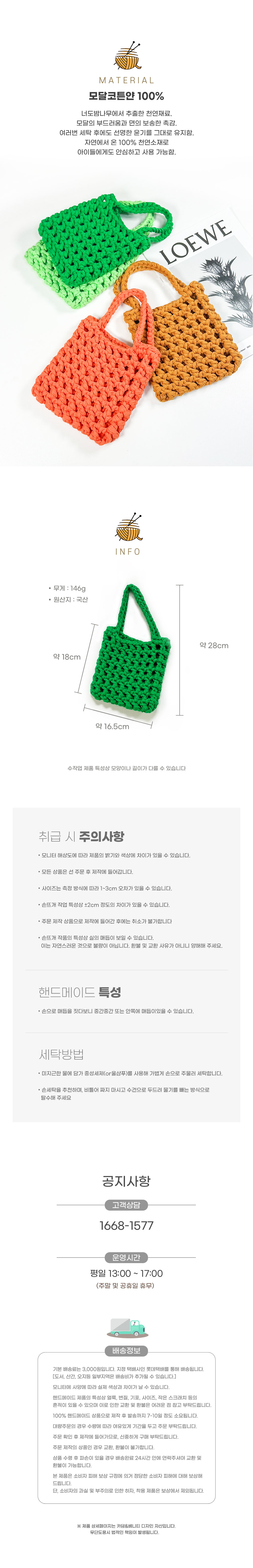 부드러운 안심소재 너도밤나무 뜨개가방