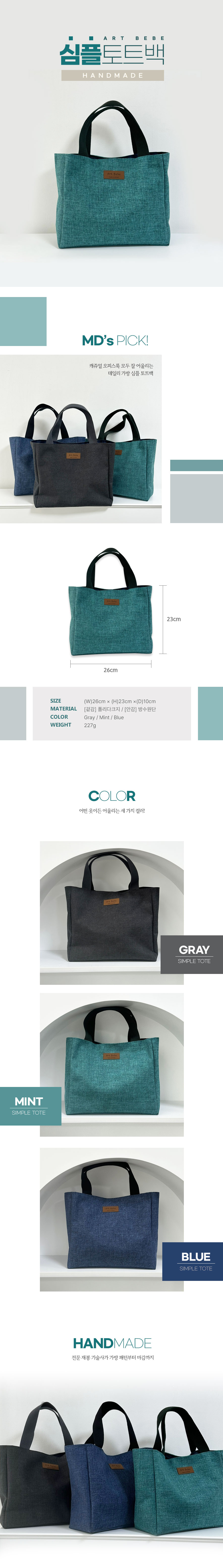 생활방수 원단으로 데일리백으로 적합한 토트백