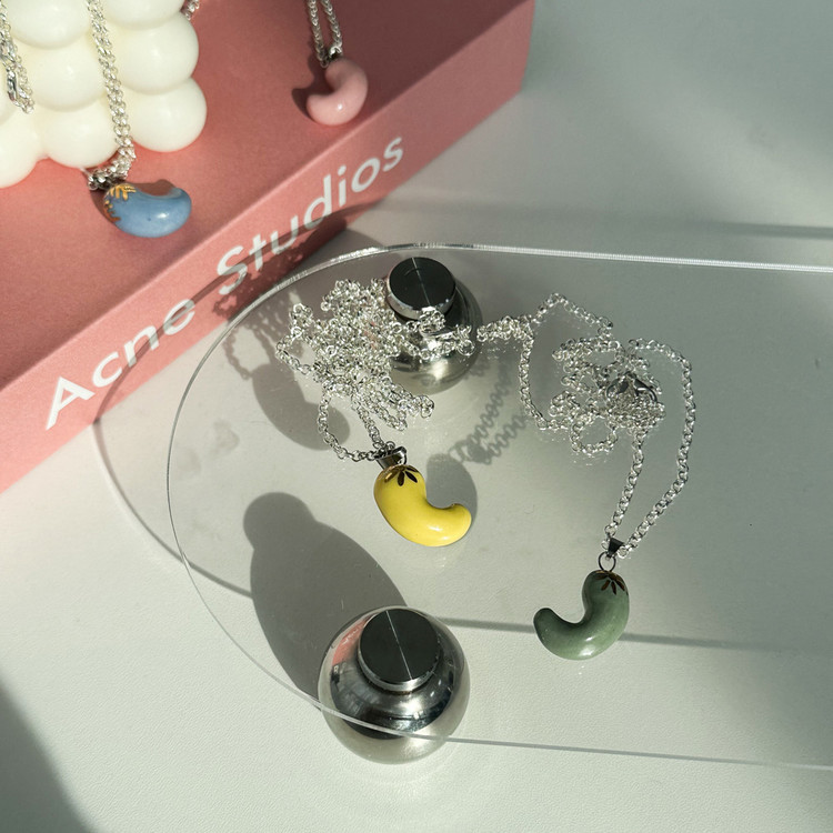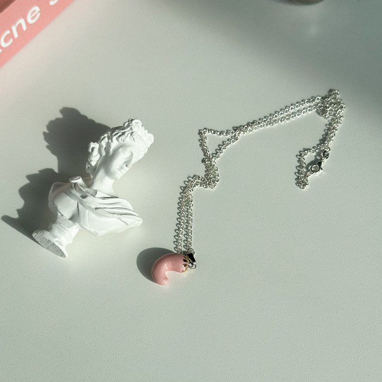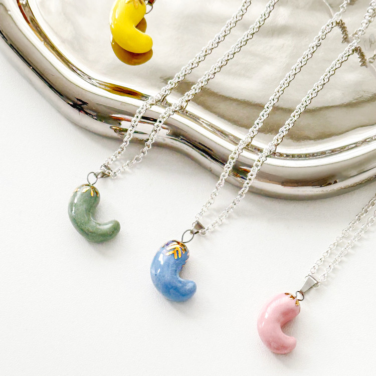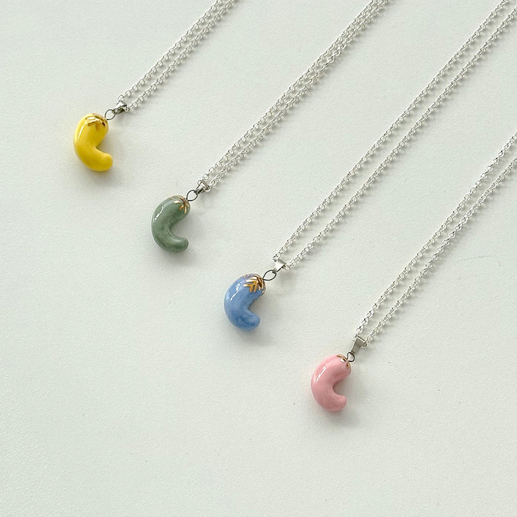 데일리 레이어드 추천 세라믹 도자기 곡옥 써지컬 은 실버 목걸이 주얼리