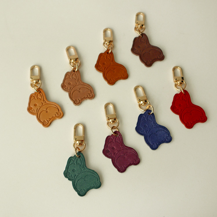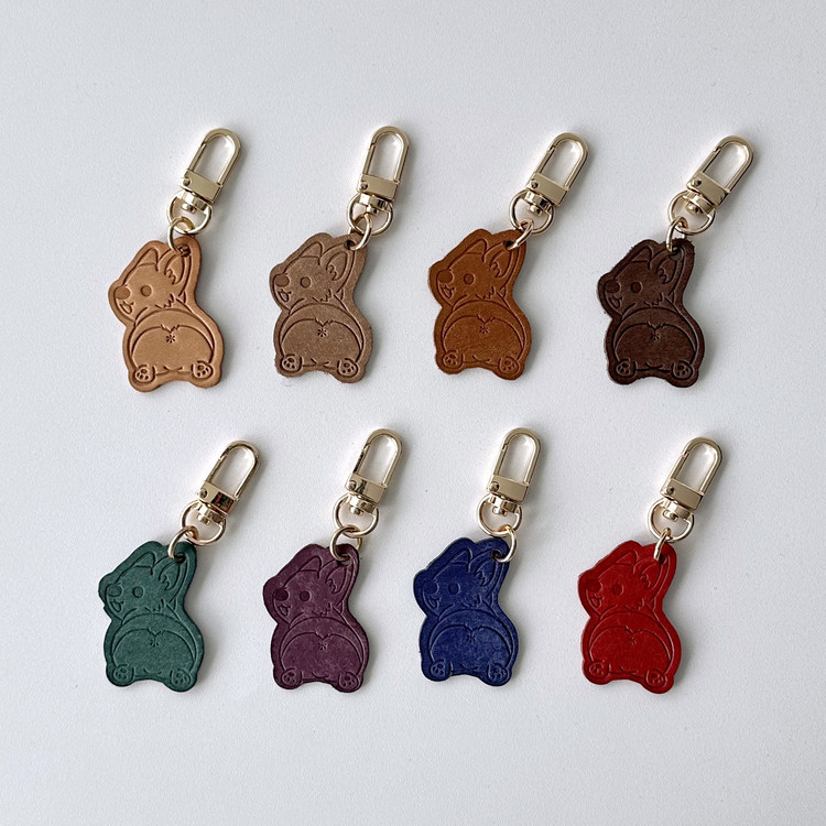 소가죽 웰시코기 가죽 키링 보라,빨강,파랑,녹색,갈색,내츄럴,진갈색,아몬드베이지