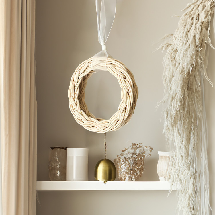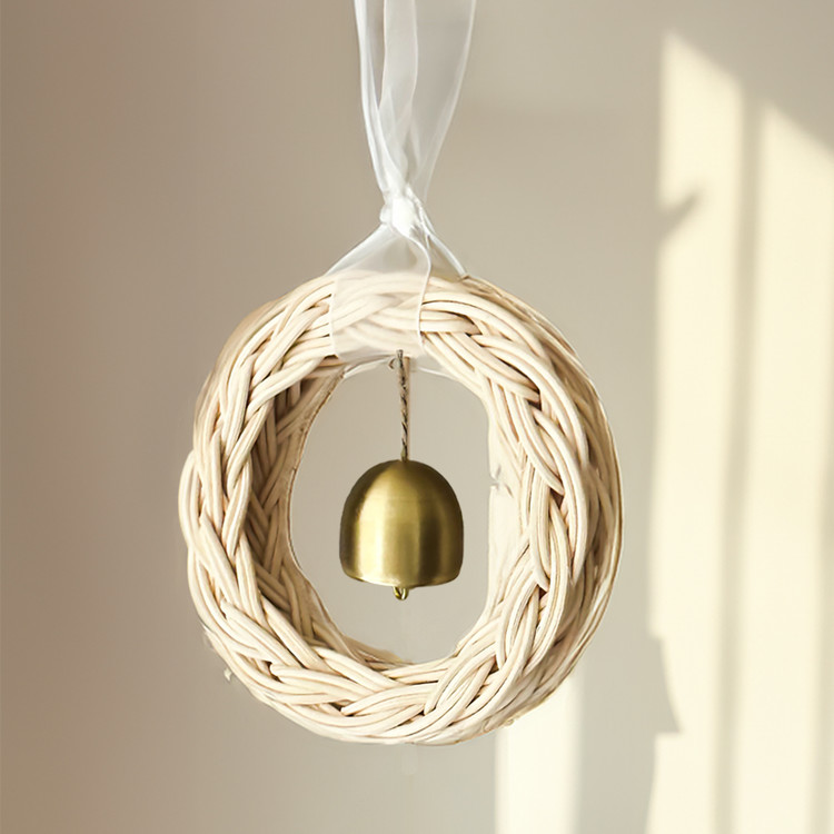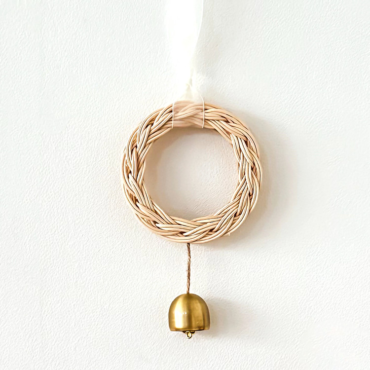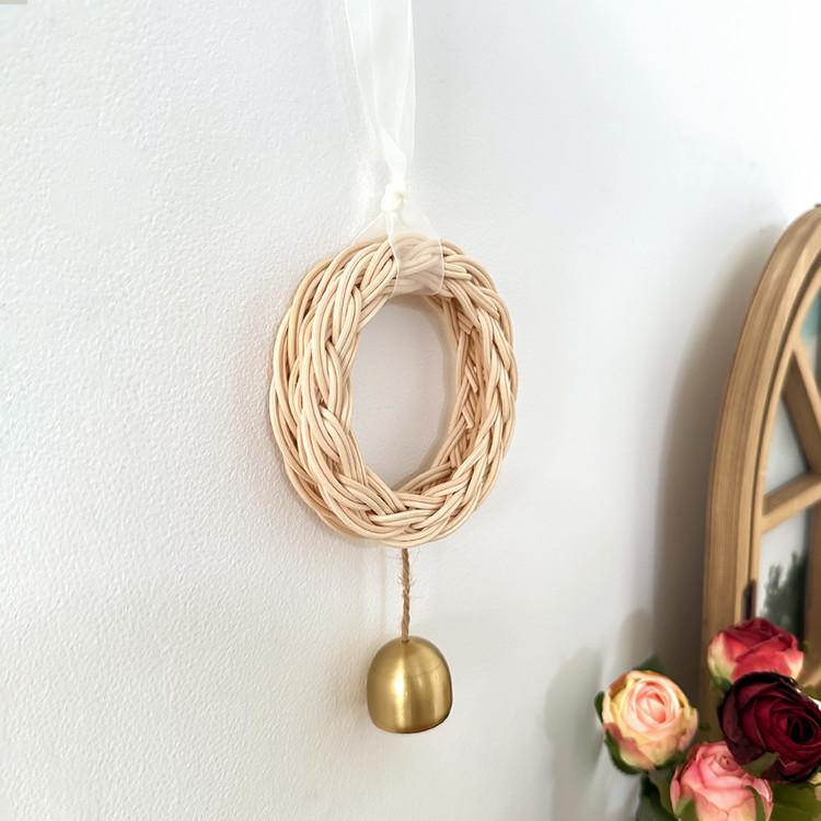 핸드메이드 라탄 리스 도어벨로 감성적인 소품을 찾는 분들에게 완벽한 선택. 친환경적인 라탄 소재와 고급스러운 골드 벨이 조화를 이루어 모든 공간에아름다움과 세련된 스타일