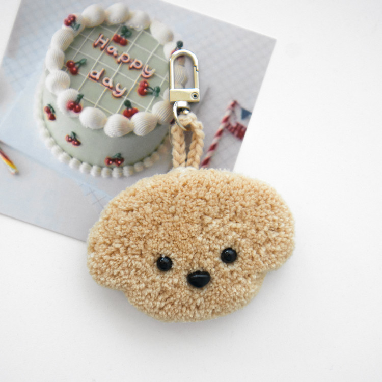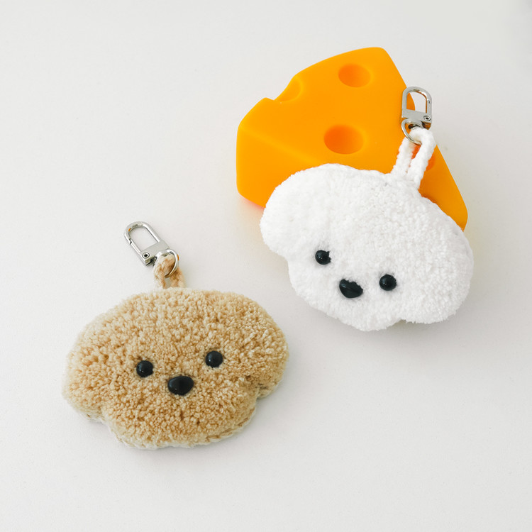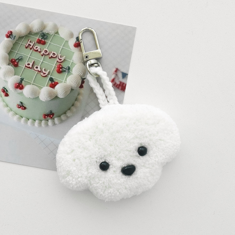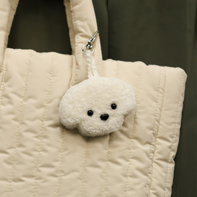 터프팅 기술력을 더한 핸드메이드 제품의 귀여운 강아지 디자인의 화이트 베이지 두가지 색상의 터프팅 키링