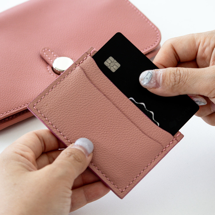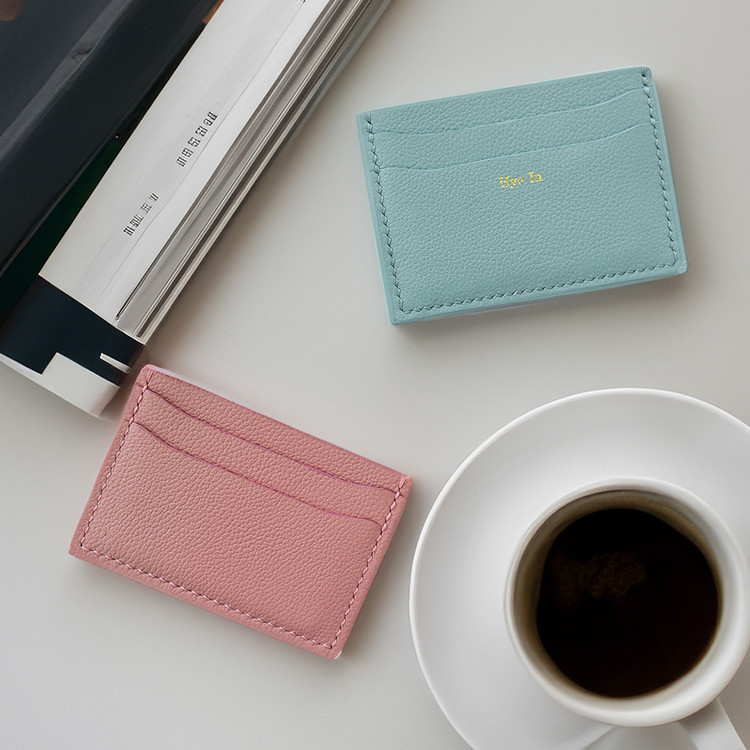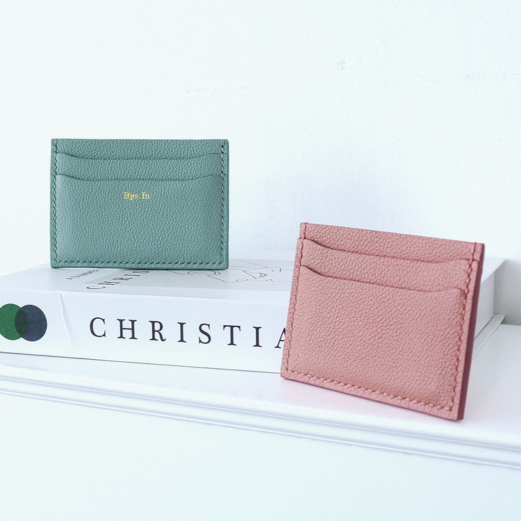 무료각인 서비스가 제공되는 파스텔 색상의 슬림핏 오플 소가죽 카드지갑