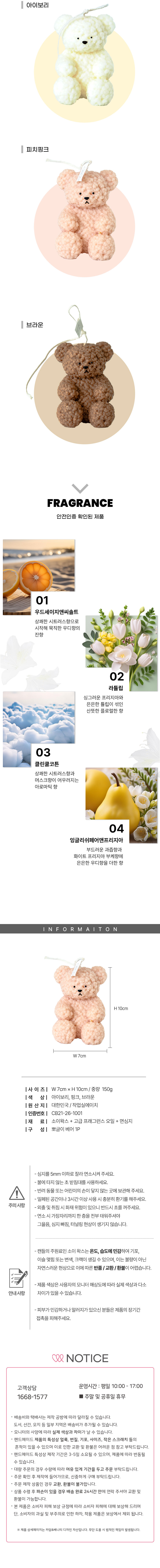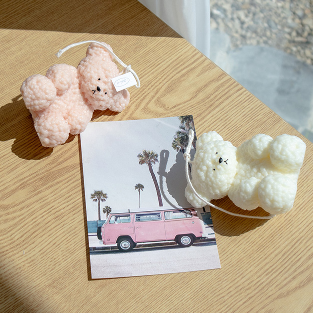 식물성 왁스로 안전한 재료와 전문 조향사게 재조한 고급 프래그런스 오일로 제작된 뽀글이 베어 소이 캔들