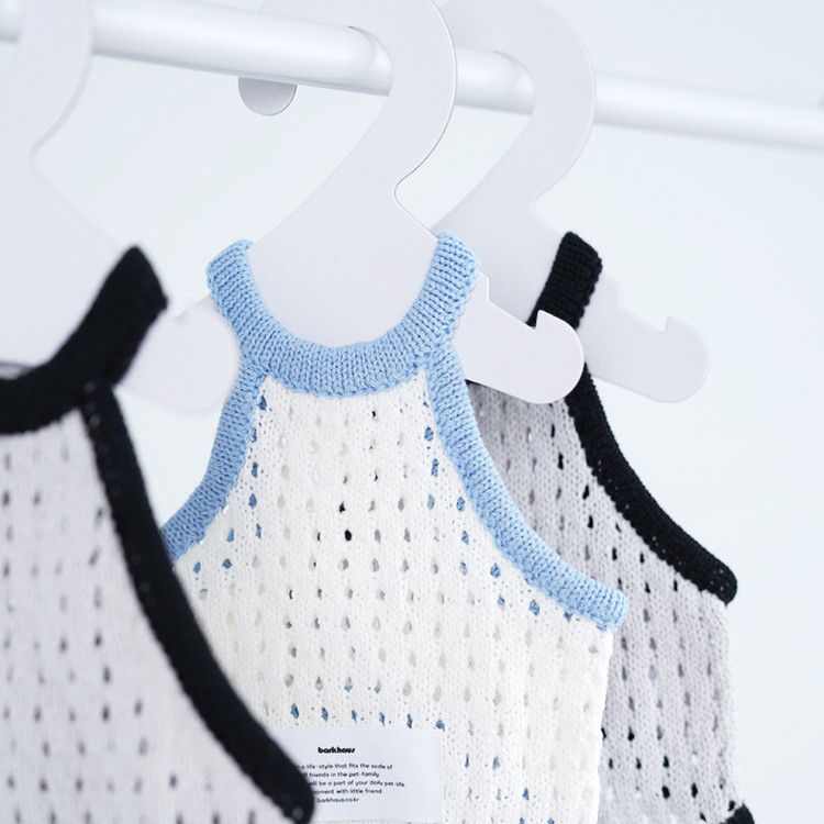코튼소재로 정성스럽게 짜여진 크롭한 기장의 성글성글한 아일렛 짜임에 통기성이 좋아 여름에도 입히기 좋은 홀터넥 니트