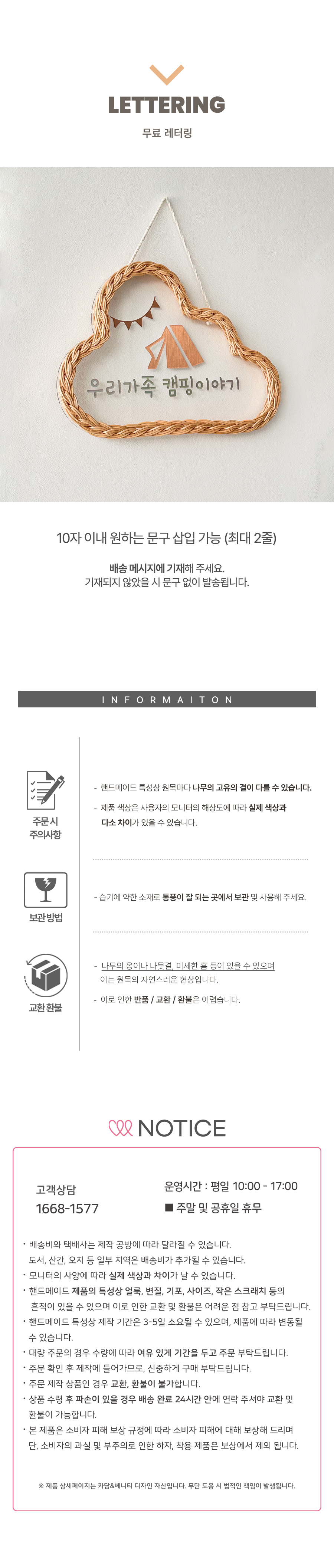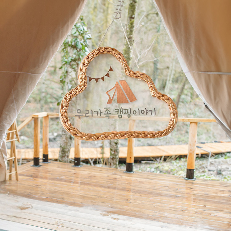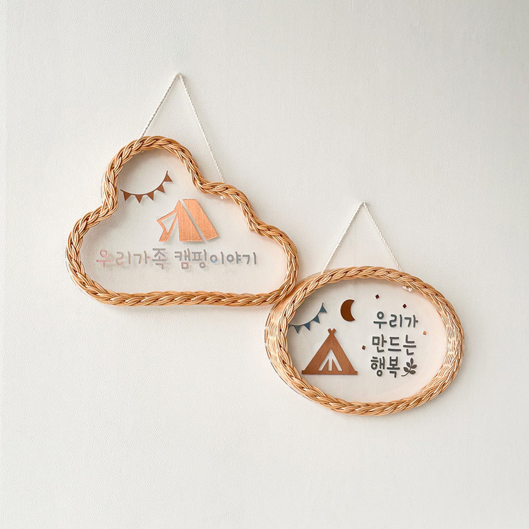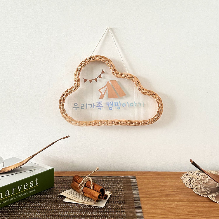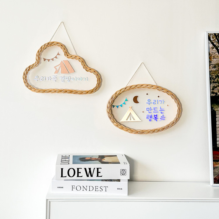 수성 마카펜을 이용해 내 마음대로 문구와 그림을 작성해 도어사인으로 활용 가능한 등나무의 감성적이고 특별한 라탄 아크릴 문패 행잉
