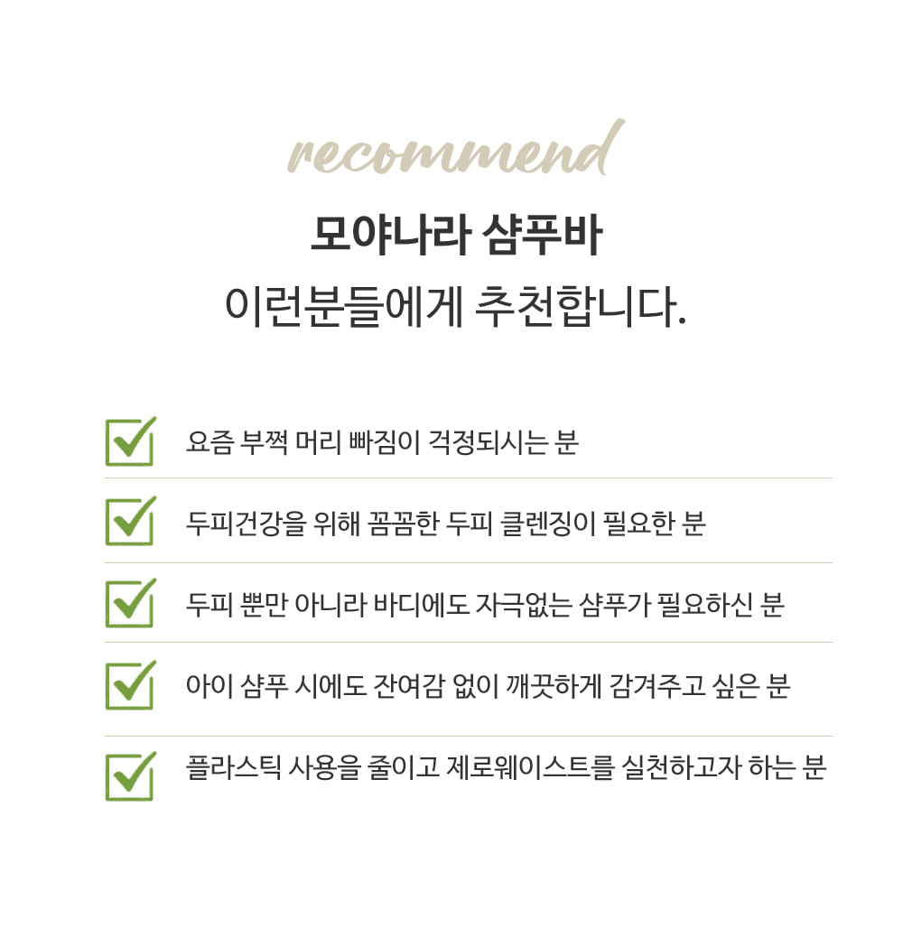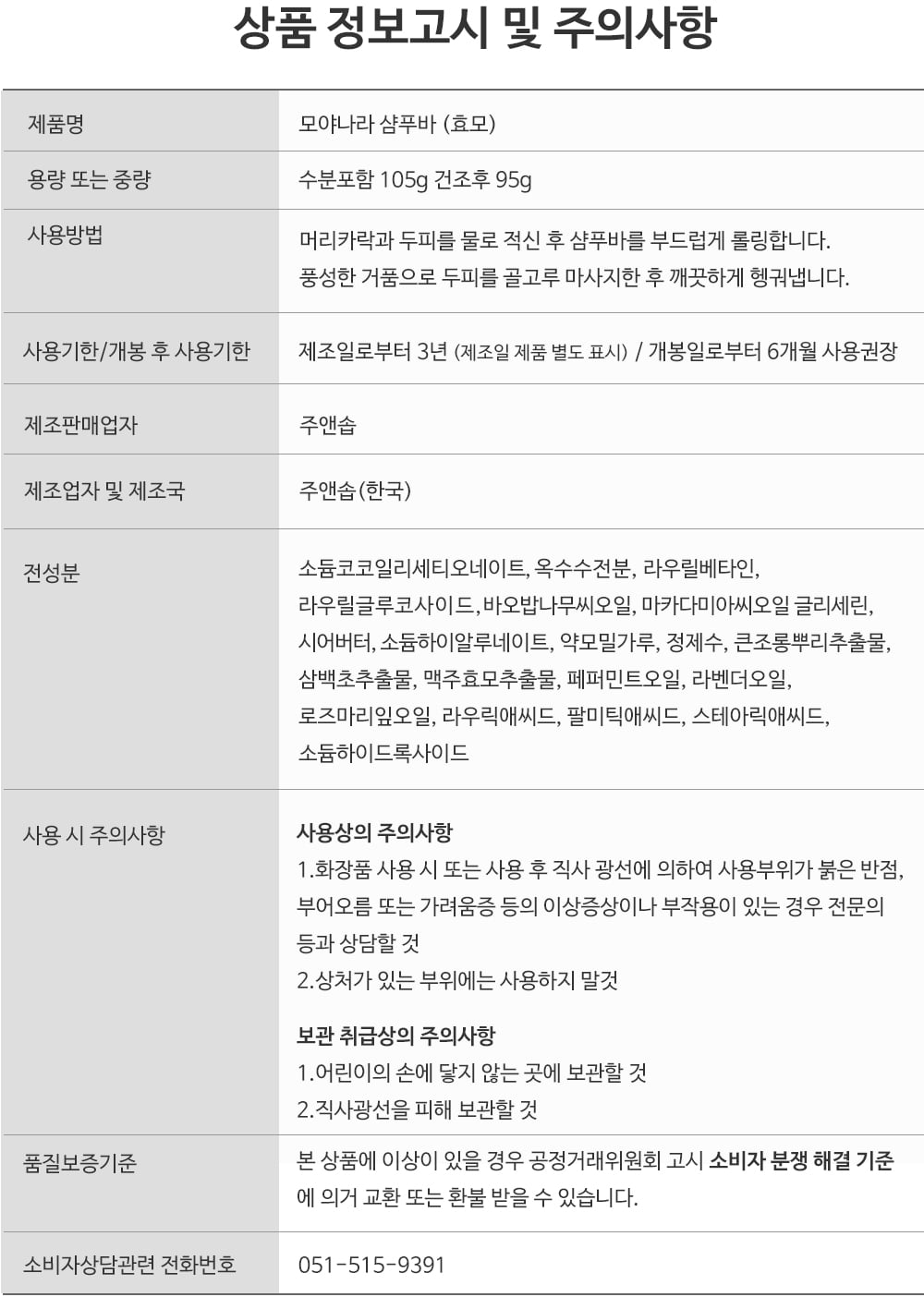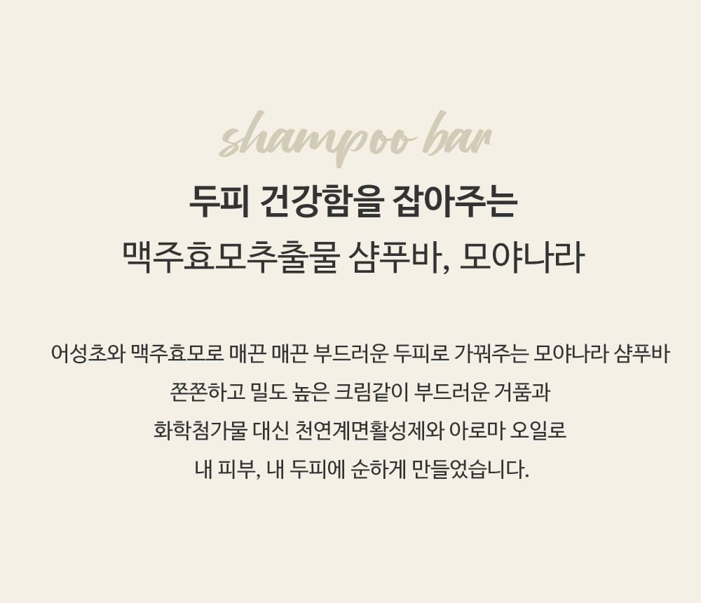 어성초는 항염 효과가 있어 두피의 자극을 완화하고, 맥주효모는 모발에 윤기를 더해줍니다.