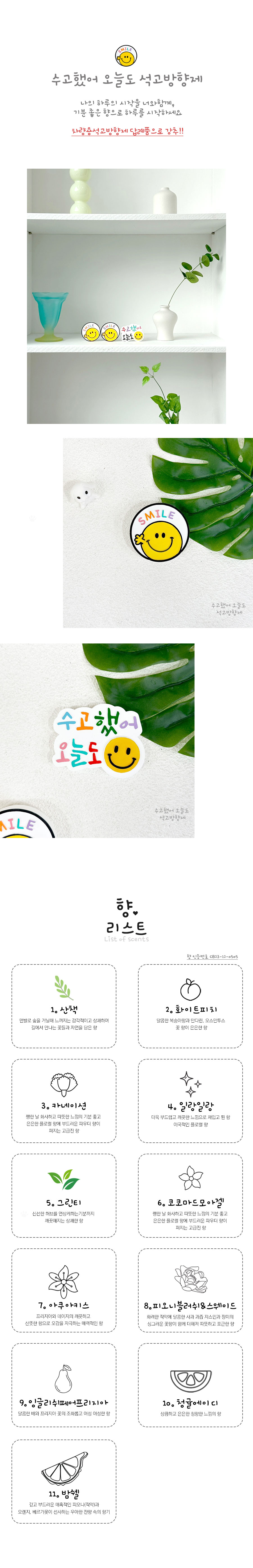 석고방향제/차량용석고방향제/스마일석고방향제/차량용석고방향제/자동차방향제/긍정적/선물/생일선물/기념일선물/새차선물