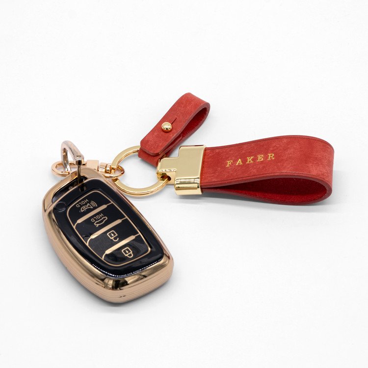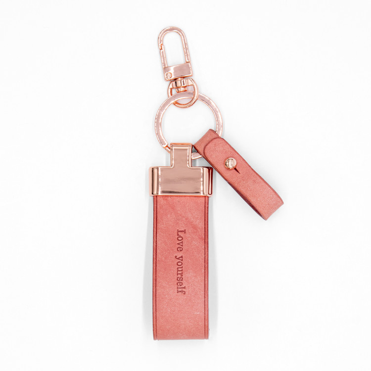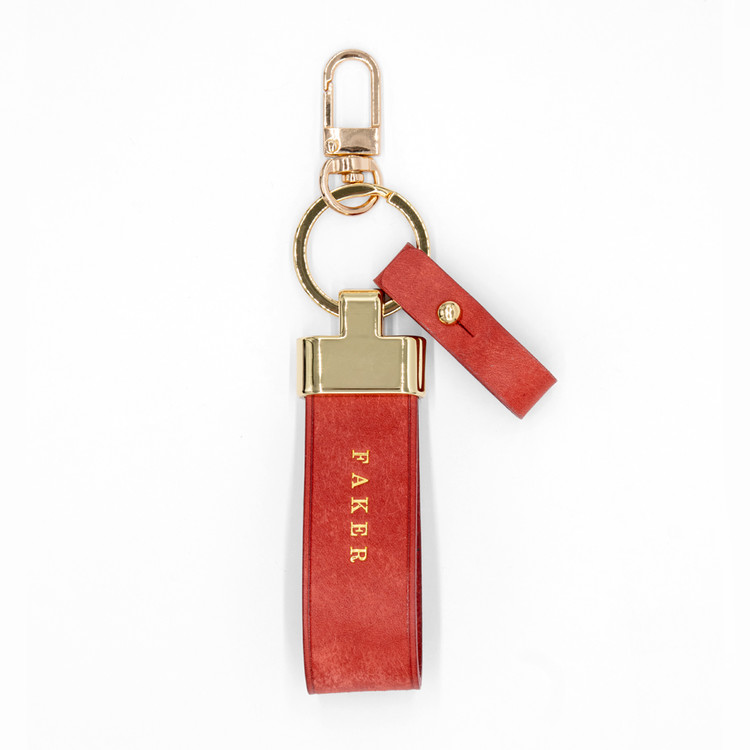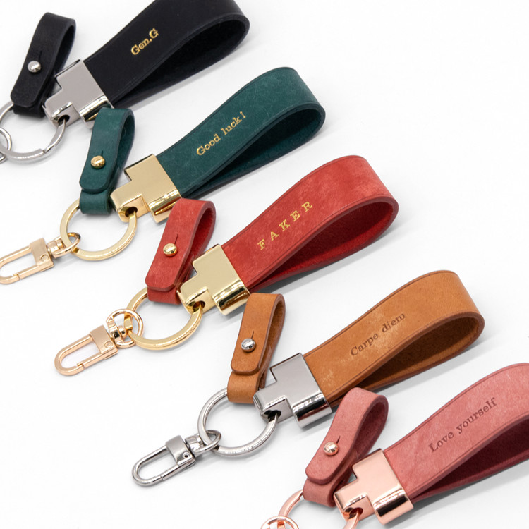 정교한 새들 스티치 기법으로 손바느질한 가죽 키링
