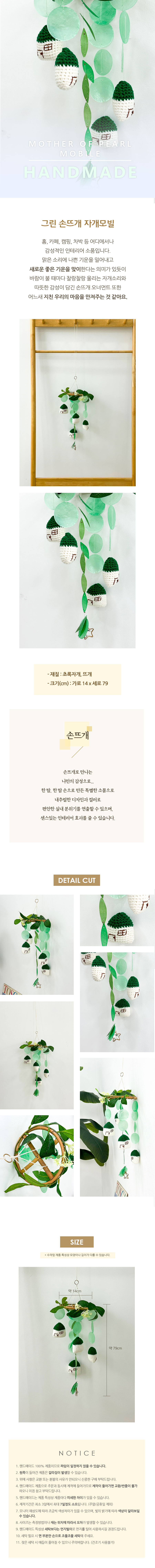 감성 인테리어 소품 손뜨개 자개모빌