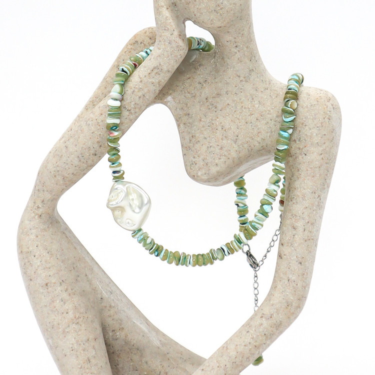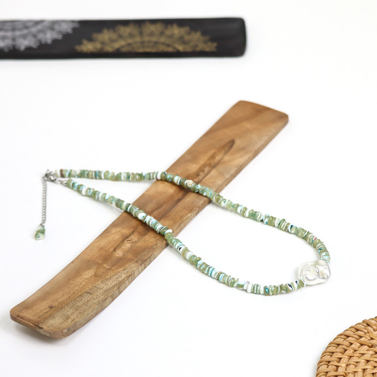 여름 진주목걸이 여름 코디 영롱한 데일리 아이템 자개 넥크리스 진주 민트자개 바로크 목걸이 휴양지 여름 코디 패션아이템 자개초커 친구선물 유니크한