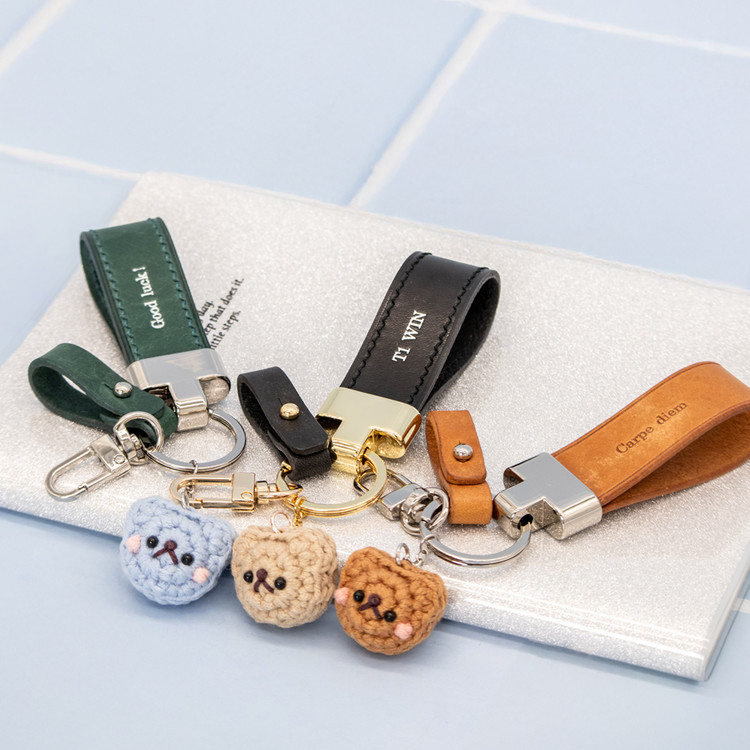발그레 가죽 키링 이태리 새들 스티치 핸드메이드 고급 참 장식 키홀더 선물용 선물 차키 가방 소품 키 가죽키링 곰돌이 곰 베어 귀여운
