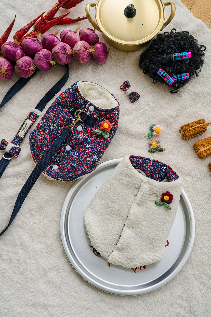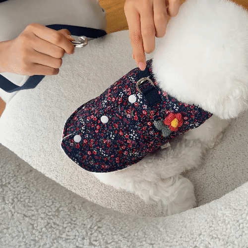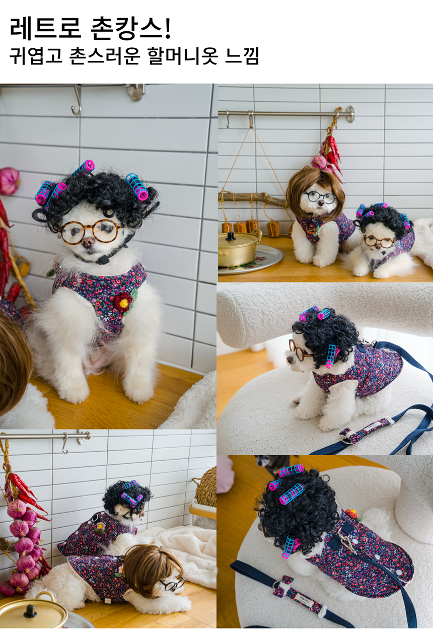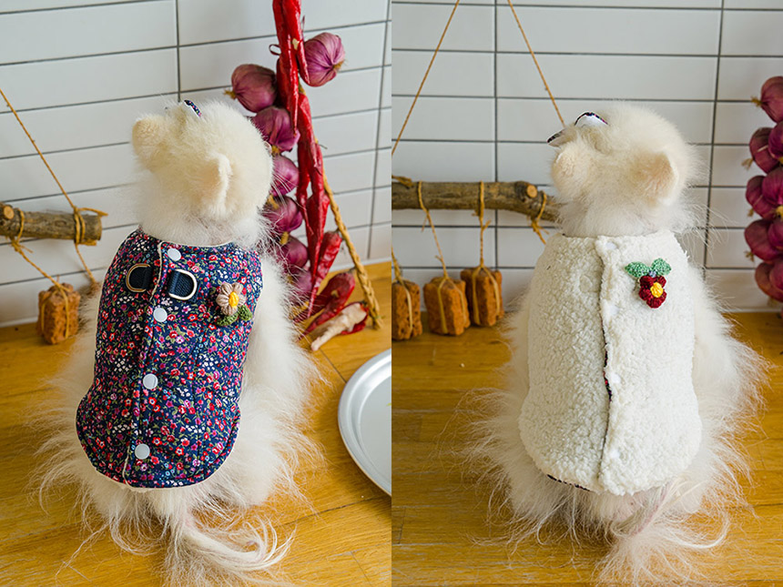 따뜻한 촌캉스룩 레트로 감성 애견 패딩 조끼 강아지옷 고양이옷 촌캉스 할머니조끼 양털 겨울 추운날 산책 애견 반려