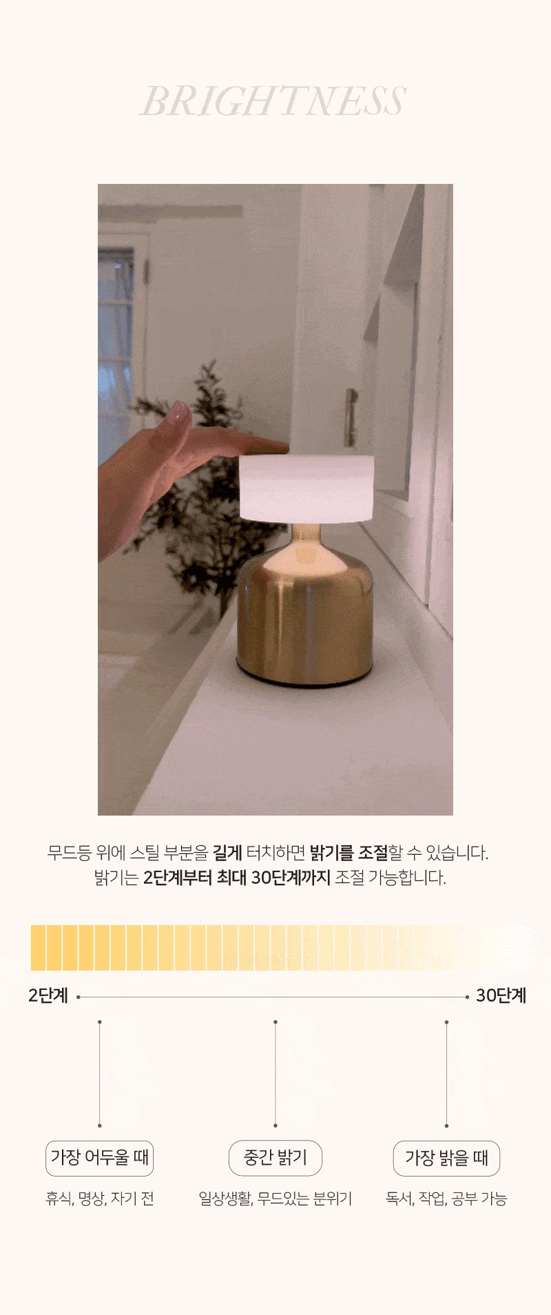 무선 무드등 터치 충전식 캠핑 조명 LED 독서등 서재 인테리어 분위기 수유등