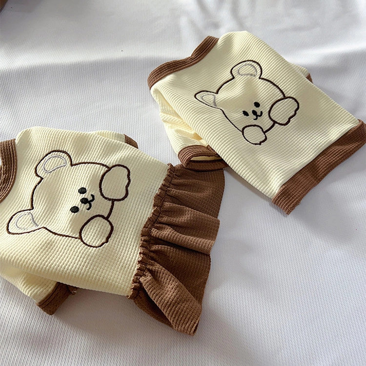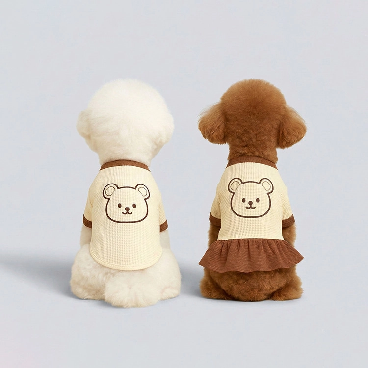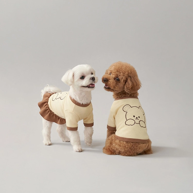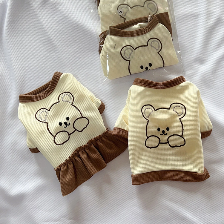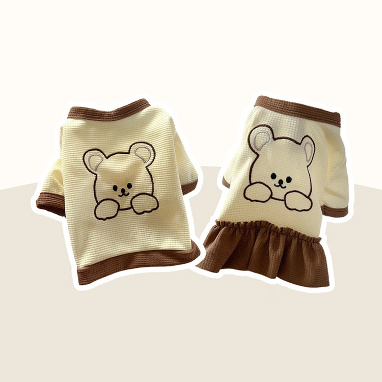 반려동물 곰돌이 자수 티셔츠 원피스 와플소재 강아지 산책 외출SALEBEST