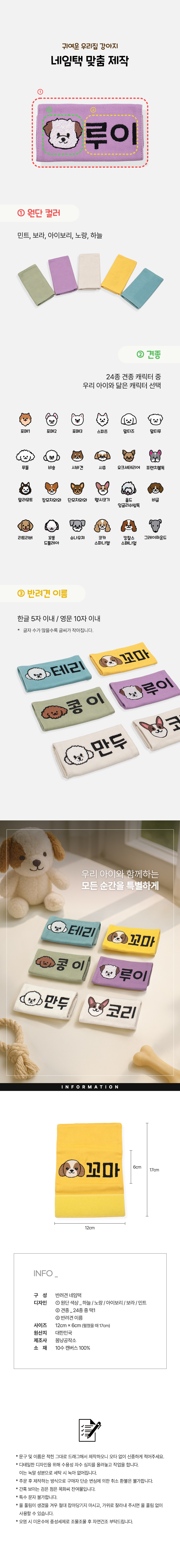 개모차 손잡이 분실방지 커스텀 자수 강아지 반려동물 이름표 맞춤 자수 패브릭이름표