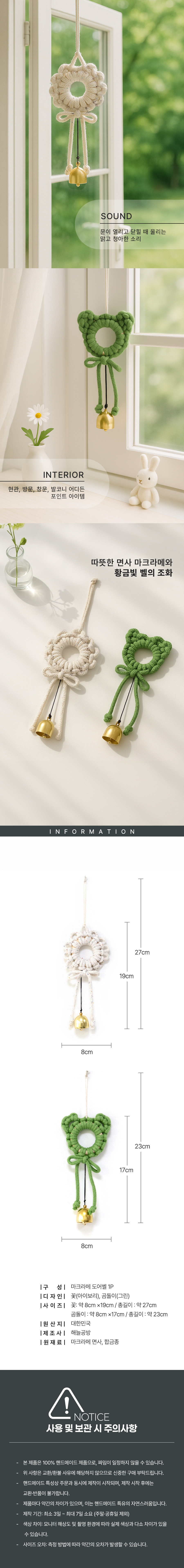 핸드메이드 인테리어 현관소품 감성 선물 벽걸이 장식 문종 풍경 도어벨 현관 집꾸미기 소품