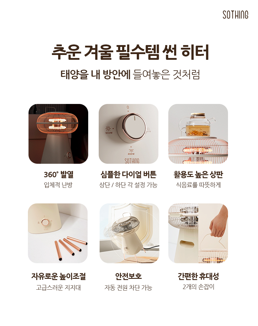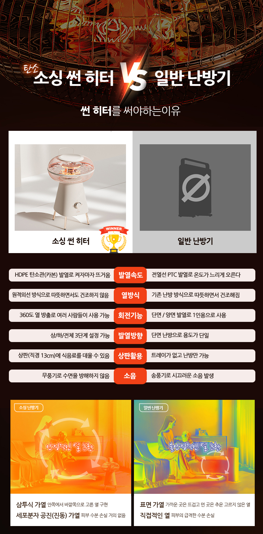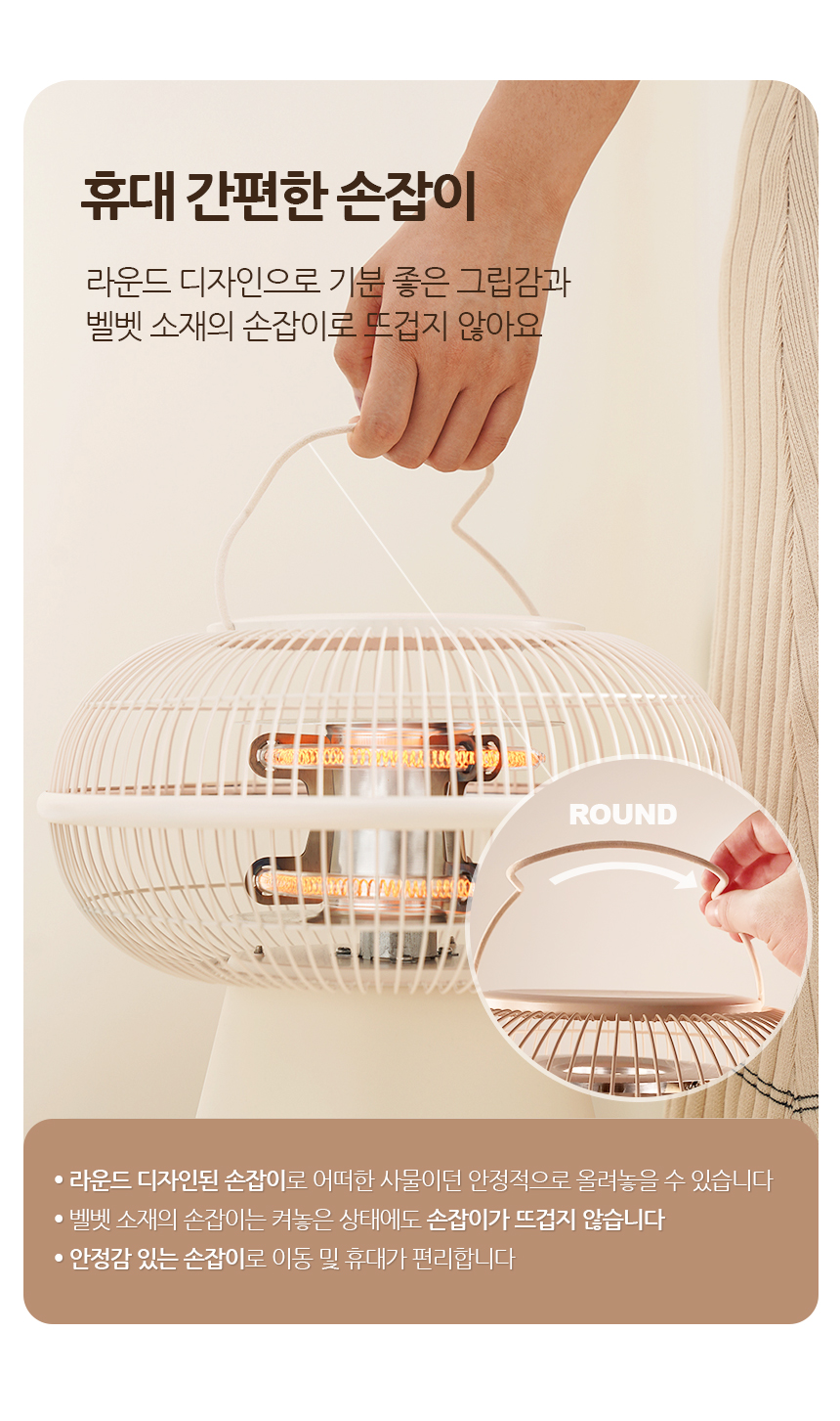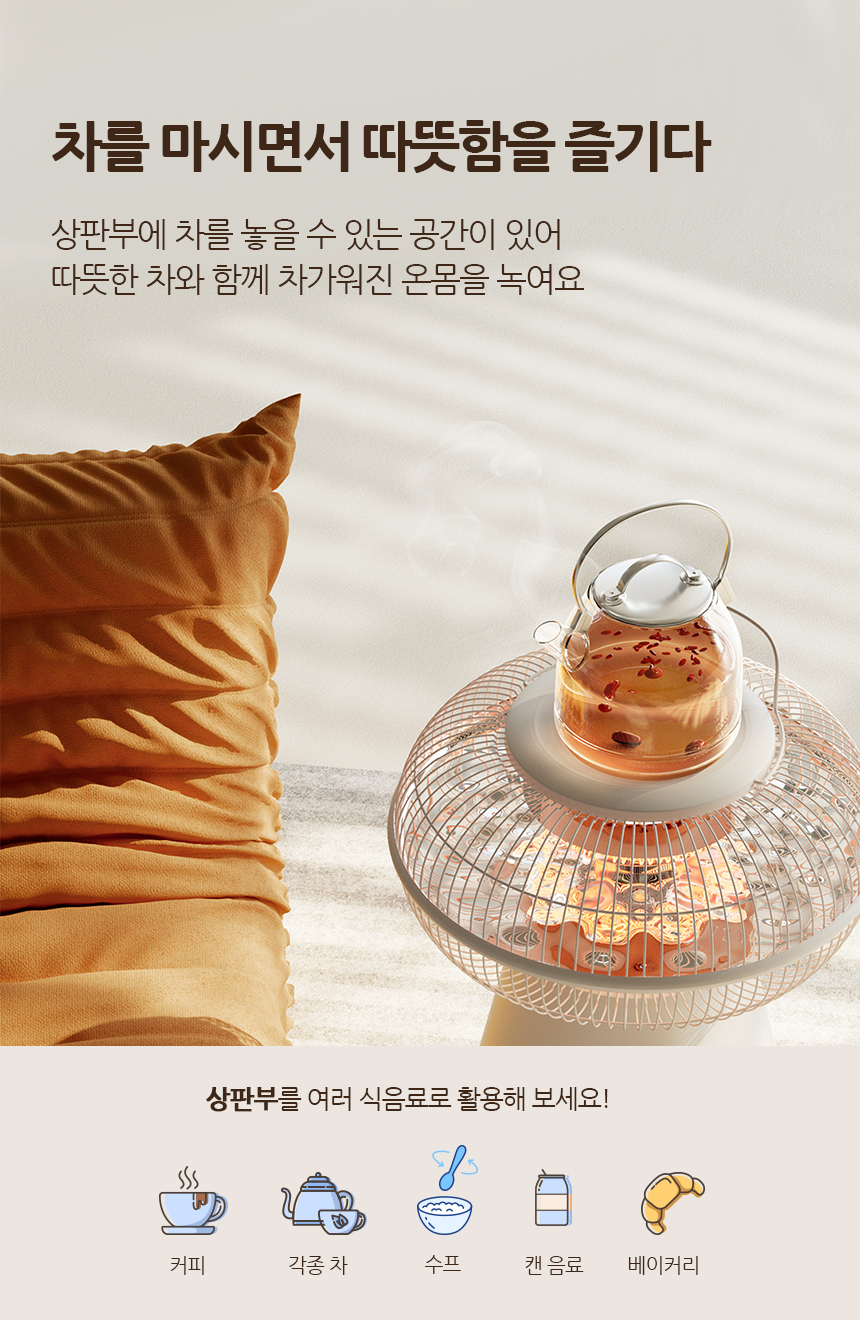 원형 PTC 발열 히팅팬 온열기 가정용 캠핑용 난방기 무소음 전기 히터 난로 따뜻한 겨울 감성