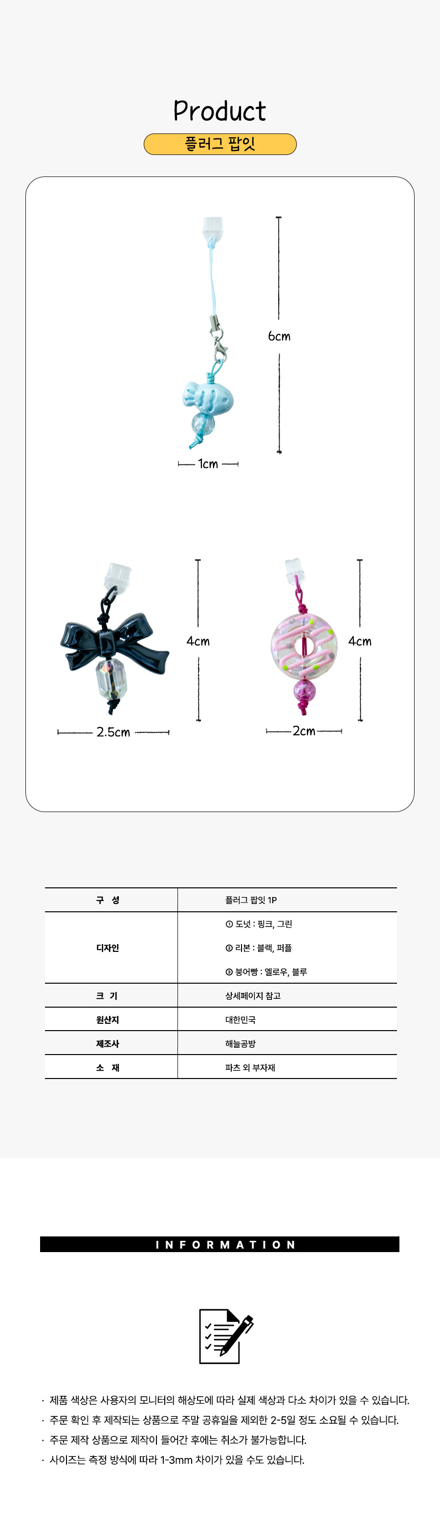 먼지방지 캡 폰꾸미기 악세사리 리본 도넛 붕어빵