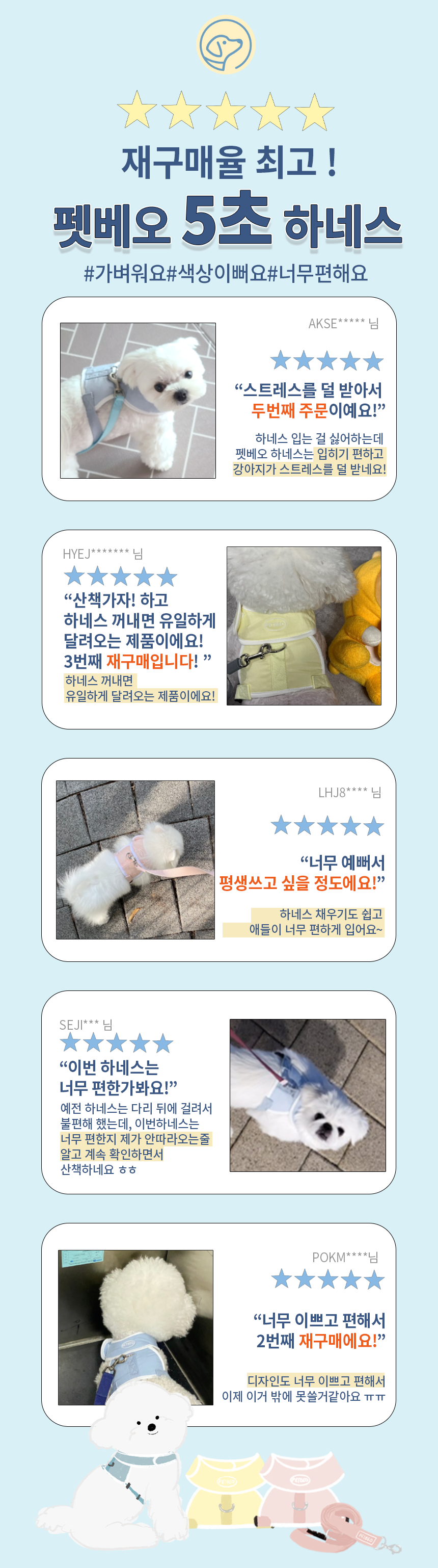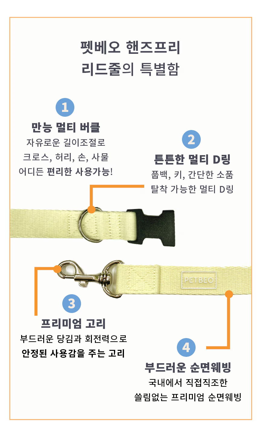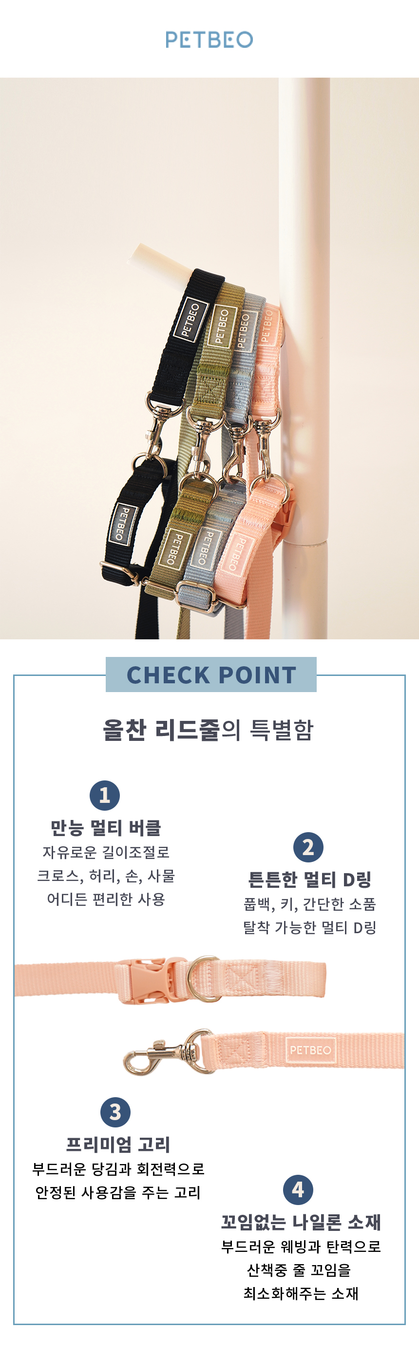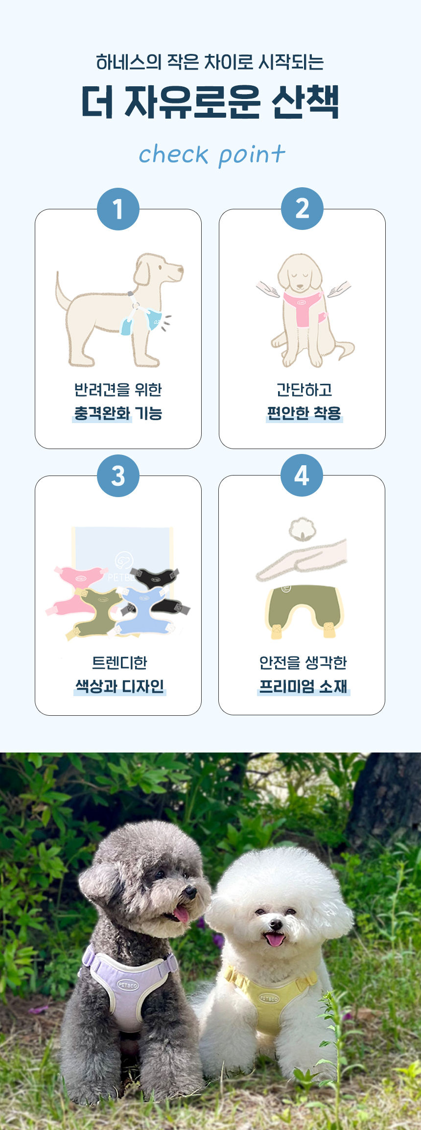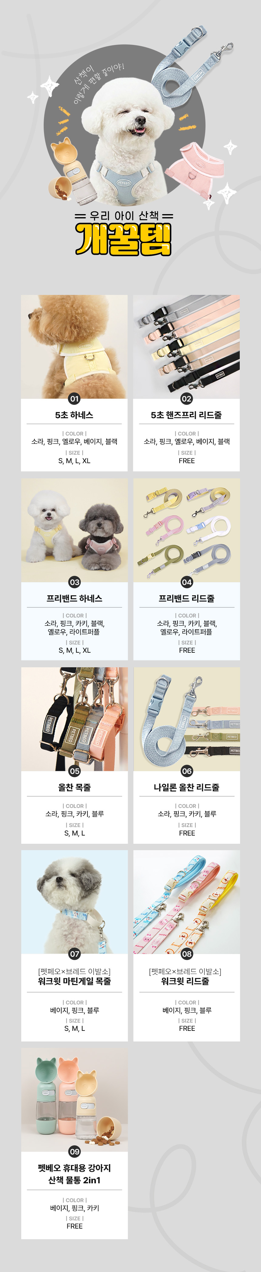 산책용품 모음전! 하네스·리드줄·목줄·휴대용 물통까지 산책에 꼭 필요한 반려견 아이템을 한곳에 모았습니다. 편안한 착용감과 실용성을 갖춘 펫베오 제품으로 매일의 산책을 더 안전하고 즐겁게 준비하세요.