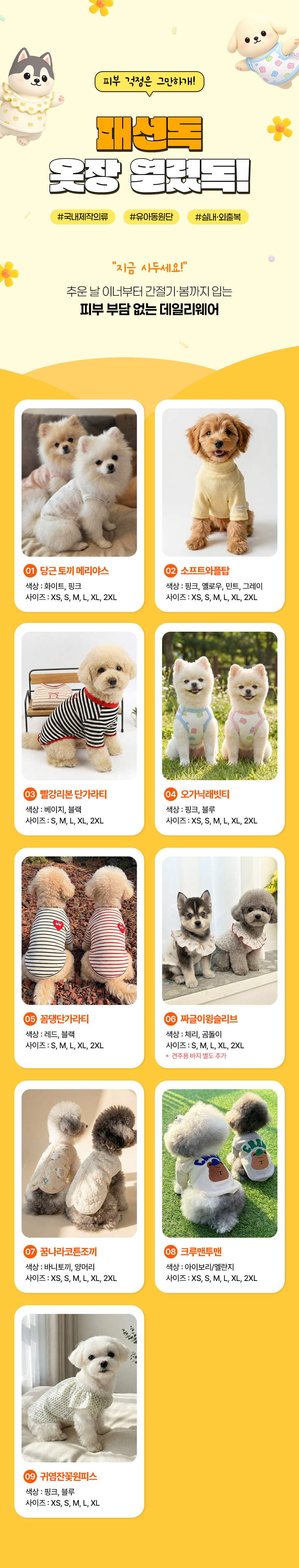 반려옷 모음전 강아지 고양이 반려동물 실내복 국내 대한민국 국산 강아지핀 리드줄 외출복 실내옷 조끼 패션독