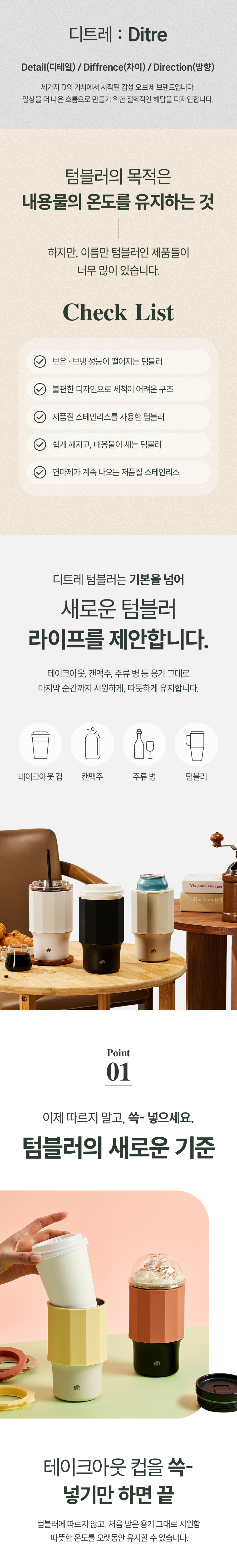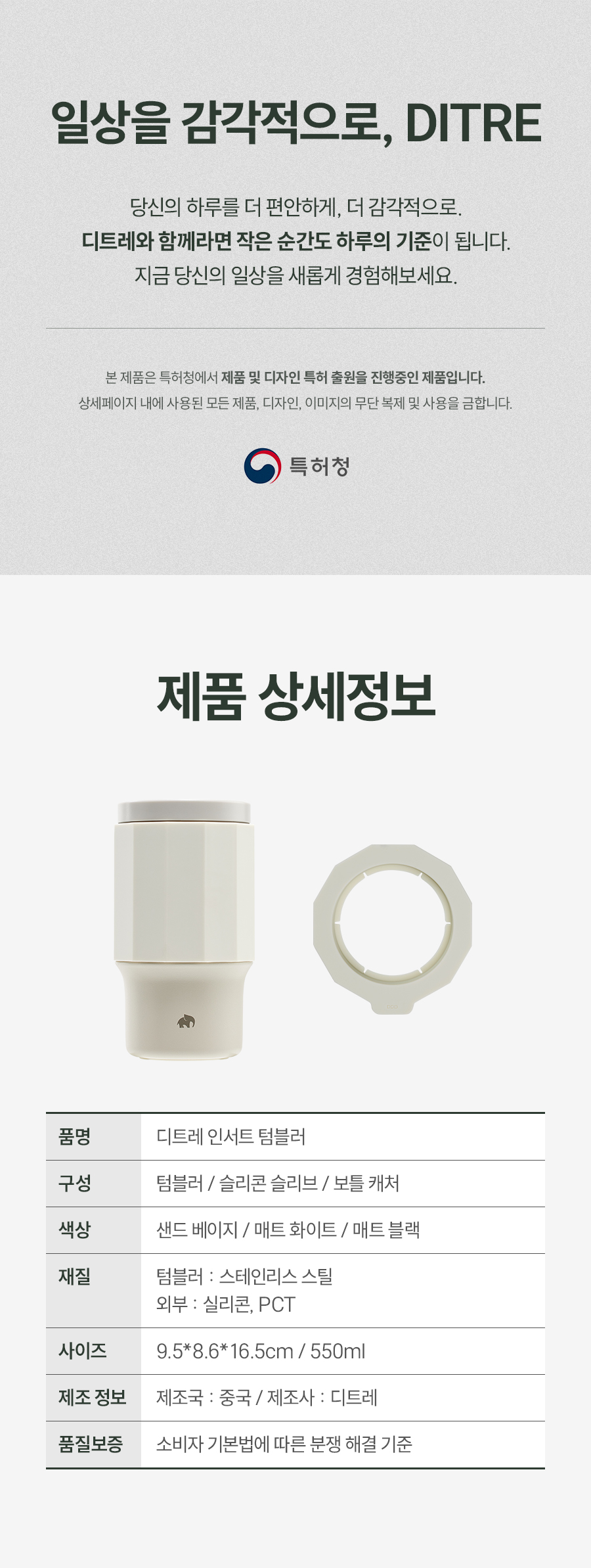 테이크아웃 커피, 이제 끝까지 시원하게! 디트레 인서트 텀블러는 카페 컵을 그대로 넣어 사용하는 컵홀더형 텀블러입니다. 강력한 보온 보냉력 및 결로 현상 없는 쾌적함을 경험하세요. 사무실 책상 위 필수템으로 추천!